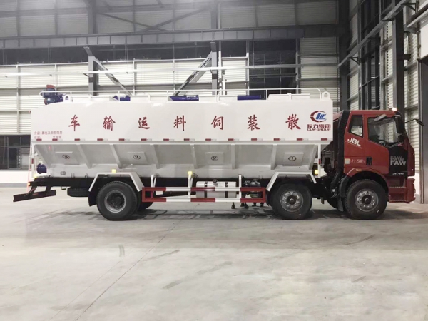 散裝飼料運(yùn)輸車主要用于從飼料廠向畜牧場(chǎng)養(yǎng)禽場(chǎng)及飼料加工用戶運(yùn)輸散裝飼料成品或飼料生產(chǎn)原糧,