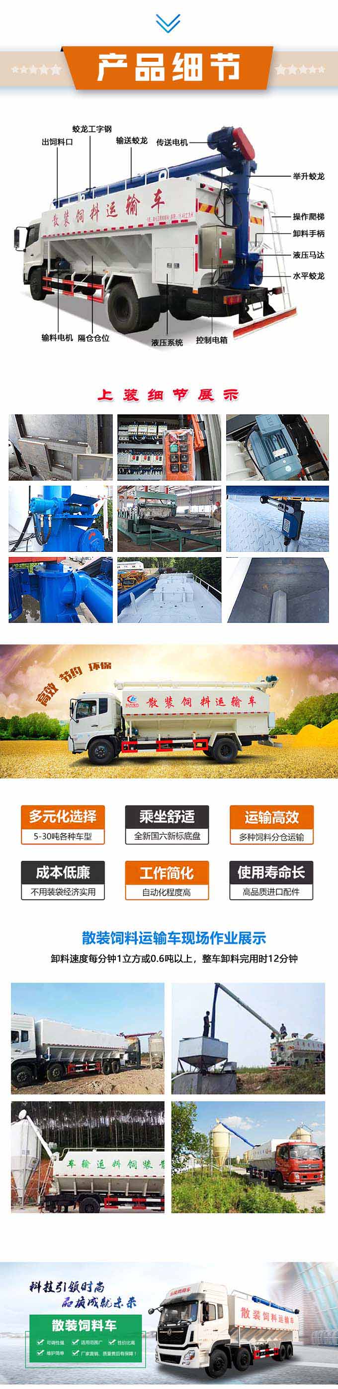 2.絞龍電機均采用國產優質電機,在粉塵、雨林、腐蝕性消毒水、惡劣的行駛環境下,保證散裝飼料車的良好運行。