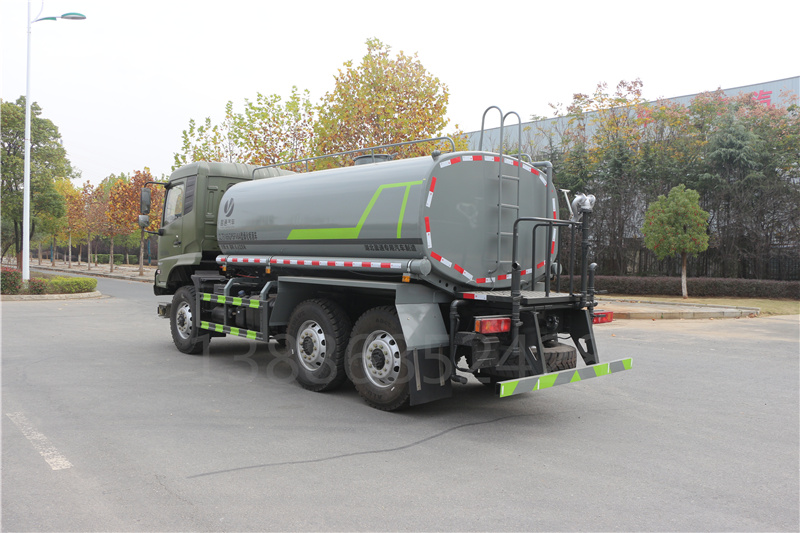 14,罐體采用武鋼優質碳鋼板制作,罐體厚度為4mm,底板和副梁4.5mm,拼板和罐體封頭全自動焊,帶消防栓接口自流口,兩根輸水管,前沖,后灑,側噴,尾部操作平臺,主管道加粗為76,配綠化水炮,水炮射程30-35