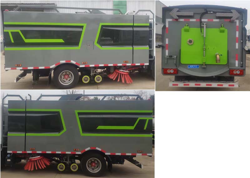 該車主要作用于路面的清掃作業(yè);專用裝置為洗掃裝置、垃圾箱。隨底盤選裝駕駛室;側(cè)防護(hù)為專用裝置代替,后防護(hù)材料為:Q235碳鋼,連接方式為:螺栓連接,后部防護(hù)截面尺寸(mm):120×50,后部防護(hù)離地高度(mm):350;ABS系統(tǒng)控制器型號為CM4XL-4S/4M,ABS系統(tǒng)控制器生產(chǎn)企業(yè)為廣州瑞立科密汽車電子股份有限公司.選裝左右及后部樣式。 |