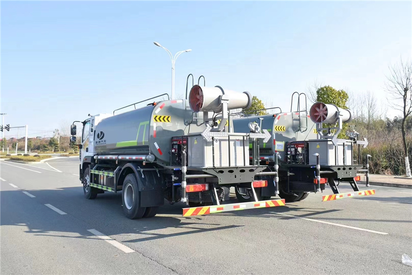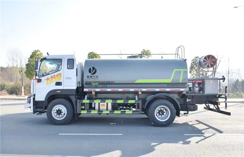 該車主要用于城鄉(xiāng)園林綠化噴灑;主要裝置為罐體及噴灑裝置;罐體總?cè)萘?/span>:11.03立方米;罐體有效容積:10.5立方米;罐體外形尺寸(×長軸×短軸)(mm):5000×2350×1600,5000×2350×1520;側(cè)、后防護材料均為:Q235碳鋼,連接方式均為:螺栓連接,后部防護截面尺寸(mm):120×50,后部防護離地高度(mm):470;ABS系統(tǒng)型號:ABS-VI.E;生產(chǎn)企業(yè):廣州瑞立科密汽車電子股份有限公司.ABS系統(tǒng)型號:ABS-E;生產(chǎn)企業(yè):威伯科汽車控制系統(tǒng)(中國)有限公司,ABS系統(tǒng)型號:3550D-1010;生產(chǎn)企業(yè):東科克諾爾商用車制動系統(tǒng)(十堰)有限公司.采用4500mm軸距。選裝尿素罐位置,選裝電瓶位置;選裝噴灑裝置樣式。選裝后部箭頭燈,選裝后部弧形噴灑裝置,選裝水炮支架位置,選裝高位花灑管道樣式,選裝后部樣式,選裝無高位花灑,選裝自動球閥安裝位置,選裝自動炮裝置樣式,前伸500mm,整車長度為9180,8750(mm)。隨底盤選裝駕駛室。
