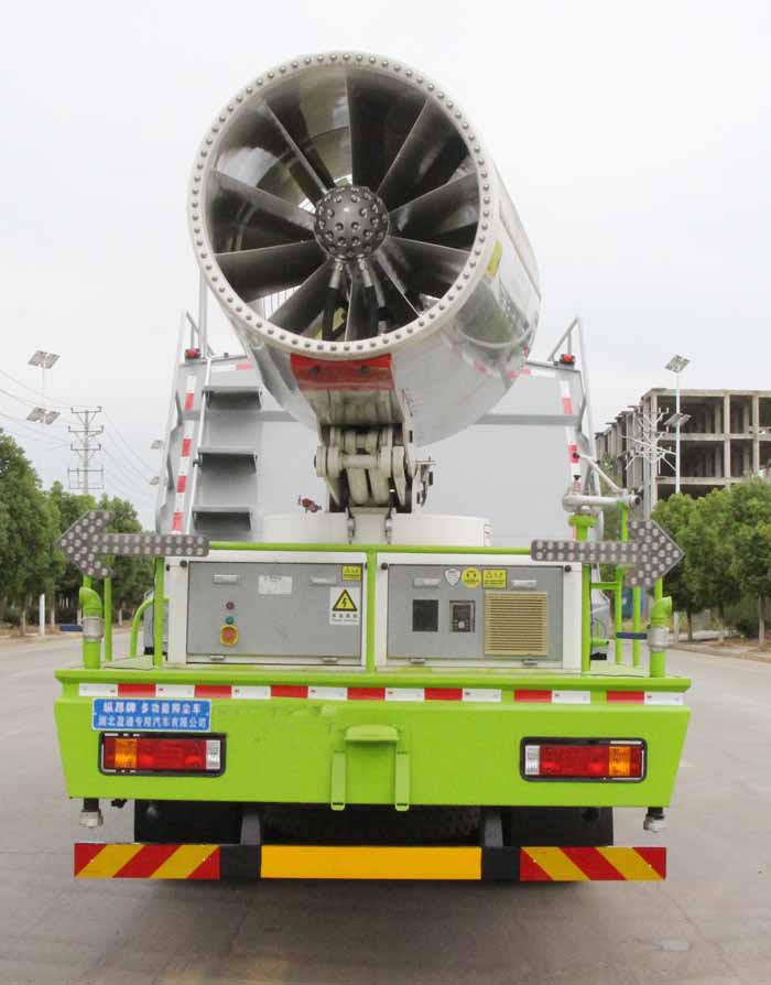 汽德龍灑水車,陜汽德龍16方120米霧炮車,國六陜汽120米霧炮車,CLT5257TDYSX6型多功能抑塵車,該車用途為城鄉道路和鐵路礦場的抑塵降霾,主要裝置為罐體及噴霧裝置.罐體總容量:13.5立方米,罐體有效容積:12.86立方米,罐體外形尺寸(×長軸×短軸)(mm):4700(下邊長),3410(上邊長)×2450×1800.側、后防護材料均為:Q235碳鋼,連接方式均為:螺栓連接,后部防護截面尺寸(mm):120×50,后部防護離地高度(mm):480.ABS系統生產廠家:西安正昌電子股份有限公司,型號:ZQFB-V.選裝霧炮樣式.整車長度/前懸/后懸/后伸對應關系(mm):11500/1450/3125/1200,11200/1450/3125/900,10300/1450/3125/0.僅采用底盤4375+1350軸距(mm)改裝.后部作業燈僅在作業時開啟,車輛行駛過程中不可開啟.隨底盤選裝駕駛室.