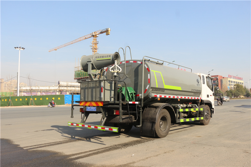 該車(chē)用途為抑塵降霾.主要裝置為罐體及噴霧裝置;罐體有效容積:9.8立方米;罐體外形尺寸(長(zhǎng)×長(zhǎng)軸×短軸)(mm):4000×2300×1540;側(cè)、后防護(hù)材料均為:Q235碳鋼,連接方式均為:螺栓連接,后部防護(hù)截面尺寸(mm):120×50,后部防護(hù)離地高度(mm):460;ABS型號(hào)為CM4XL-4S/4M,生產(chǎn)廠家為廣州瑞立科密汽車(chē)電子股份有限公司.隨底盤(pán)選裝駕駛室,選裝噴霧裝置樣式。