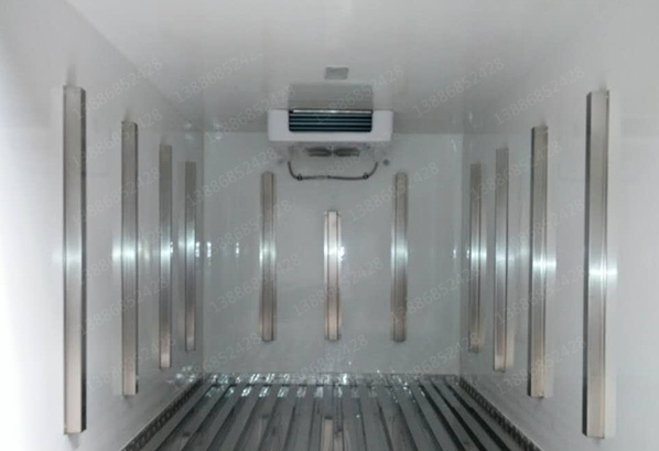 采用國際最先進的1200噸真空吸附一體成型制造。通用三明治斷橋隔熱工藝,是由鍍鋅管骨架加上中間8CM保溫環保材質擠塑板填充、防水木板用螺絲連接,壁板選用國內優質的機制1.8mm厚度玻璃鋼,內壁選用1.2mm厚度熱縮板,廂體厚度80mm,門框厚度80mm,底板上面整體鋪鋁花紋板,高強度粘合劑,箱體真空吸附8小時以上,確保箱體一次成型杜絕箱體起包,脫膠。廂體周邊3mm加厚型鋁合金包邊,不銹鋼包角,304不銹鋼門鎖,不銹鋼一體式門框,加大型防碰撞膠皮,廂內LED節能照明燈?蛇x-5°至-18°制冷機組.