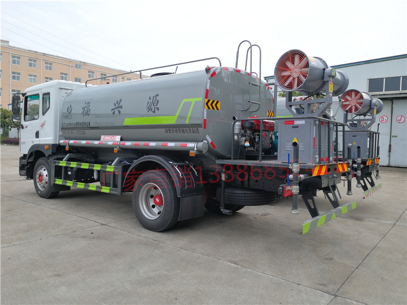 該車用途為抑塵降霾,主要裝置為罐體及噴霧裝置;隨底盤選裝駕駛室;罐體有效容積:12立方米;罐體外形尺寸(×長軸×短軸)(mm):4000×2300×1540,4200×2450×1700,4000×2450×1680;ABS型號:ABS系統生產廠家,型號 :焦作博瑞克控制技術有限公司,J ABS;襄陽東風隆誠機械有限責任公司,ABS/ASR-24V-4S/4M.側、后防護材料均為:Q235碳鋼,連接方式均為:螺栓連接,后部防護截面尺寸(mm):120×50,后部防護離地高度(mm):460.選裝附件位置,選裝噴霧裝置樣式,選裝油箱出口位置。