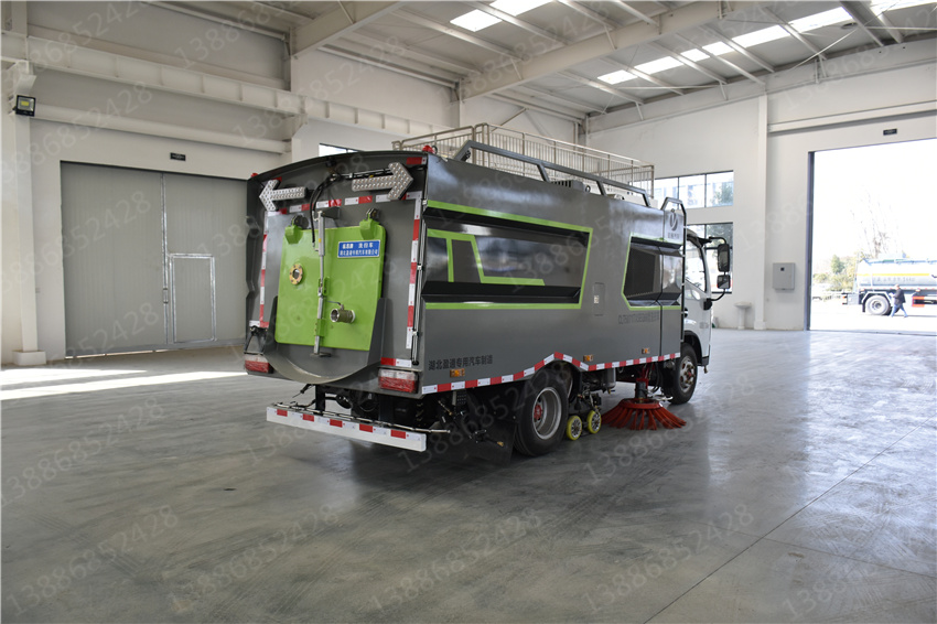 東風(fēng)福瑞卡洗掃車_國六5.5方洗掃車_物業(yè)小區(qū)洗掃車_藍(lán)牌柴油清掃車,該車主要作用于路面的清掃作業(yè);專用裝置為清掃裝置、垃圾箱。ABS型號/廠家:ABS/ASR-12V-4S/4M/襄陽東風(fēng)隆誠機械有限責(zé)任公司;側(cè)防護裝置為專用裝置代替,后防護材料均為:Q235碳鋼,連接方式為:螺栓連接,后部防護截面尺寸(mm):120×50,后部防護離地高度(mm):370.隨底盤選裝駕駛室。選裝燃油箱,電瓶,尿素罐,儲氣筒左右安裝位置。