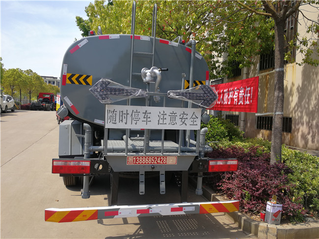 1.罐體有效容積:11.46立方米,罐體外形尺寸(長×長軸×短軸)/軸距/整車長度/整備質量的對應關系為(mm):(5200×2300×1420)/4500/8450/6900/2690;(5200×2300×1410)/5300/8450/6900/1890;(5200×2300×1410)/4500/8450/6900/2690;(5200×2300×1420)/4700/8450/6900/2490;(4400×2350×1600)/3950/7600/6700/2390;(5200×2300×1420)/5600/8450/6900/1590;2、防護材料:Q235A碳鋼,連接方式:左右側面采用焊接連接,后下部防護采用螺栓連接,后部防護斷面尺寸(mm):120×50,后部防護離地高度(mm):490.3、ABS系統生產廠家,型號 :焦作博瑞克控制技術有限公司,J ABS。4、專用裝置:罐體,主要用于灑水及園林綠化。5.選裝排氣管位置。