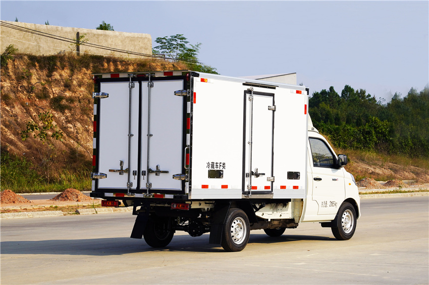 福田祥菱M1冷藏車采用國六汽油東安115馬力(DAM15KR)發動機,5擋變速箱,2750軸距,高配,原廠空調,后雙胎,5檔變速箱,175R14后雙胎,122后橋,ABS,電動助力轉向,