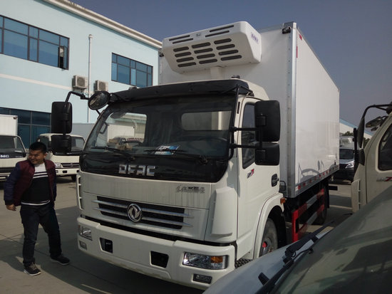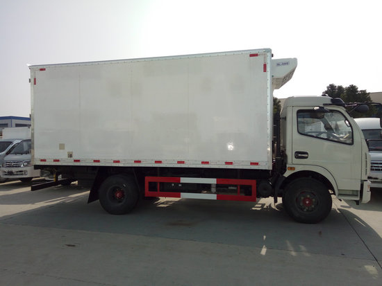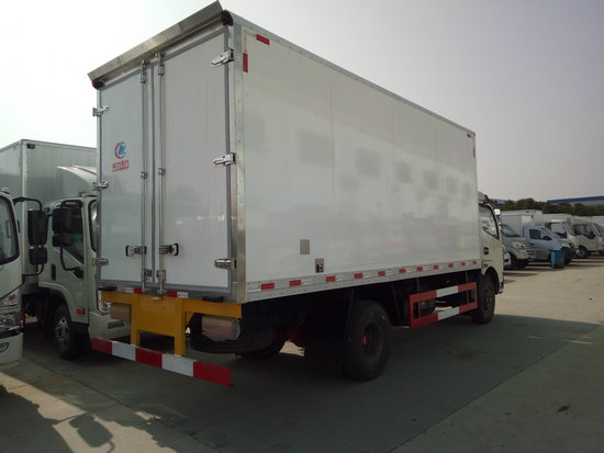 冷藏車廂體:采用國標A級聚氨酯保溫材料,厚度為8厘米,廂體內外采用玻璃鋼材質全包裹。不銹鋼鎖件。包角、包邊鋁合金型材。底盤采用高強度花紋鋁板定制。可選裝肉鉤導軌,和底部通風槽
