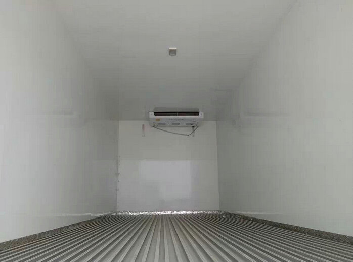 冷藏車廂體:采用國標A級聚氨酯保溫材料,厚度為8厘米,廂體內外采用玻璃鋼材質全包裹。不銹鋼鎖件。包角、包邊鋁合金型材。底盤采用高強度花紋鋁板定制。可選裝肉鉤導軌,和底部通風槽