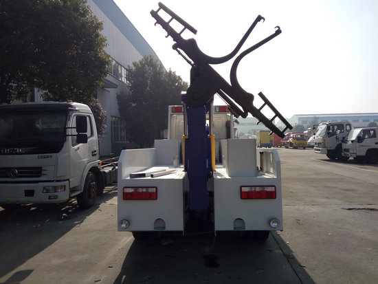 聯體型上裝,整體式車體,左右各一個立式工具箱,雙側聯動操作裝置,前保險杠裝有配重,后工作燈3只,1個40KN液壓絞盤(25米鋼絲繩)1個洗手箱,配兩個小車,L型抱胎架一對,2根捆綁帶,托叉一對,托叉座一對,鏈鉤一條,一個LED長排工程警燈。