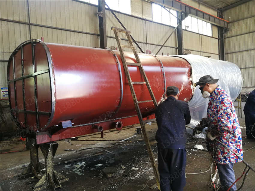 3. 保層溫的制作是在水罐外部另外焊接10mm厚的支撐骨架,然后用保溫材料將骨架內部填充滿,**在骨架外蒙上一層外皮。 保溫層外表鐵皮采用8mm厚高強度耐磨板,可選擇使用不銹鋼分鏡面8K或磨砂板