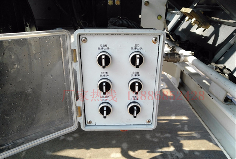 22、加裝手動(dòng)泵應(yīng)急系統(tǒng),在副發(fā)動(dòng)機(jī)停止的狀態(tài)下也能舉升垃圾箱,便于維護(hù)保養(yǎng)。