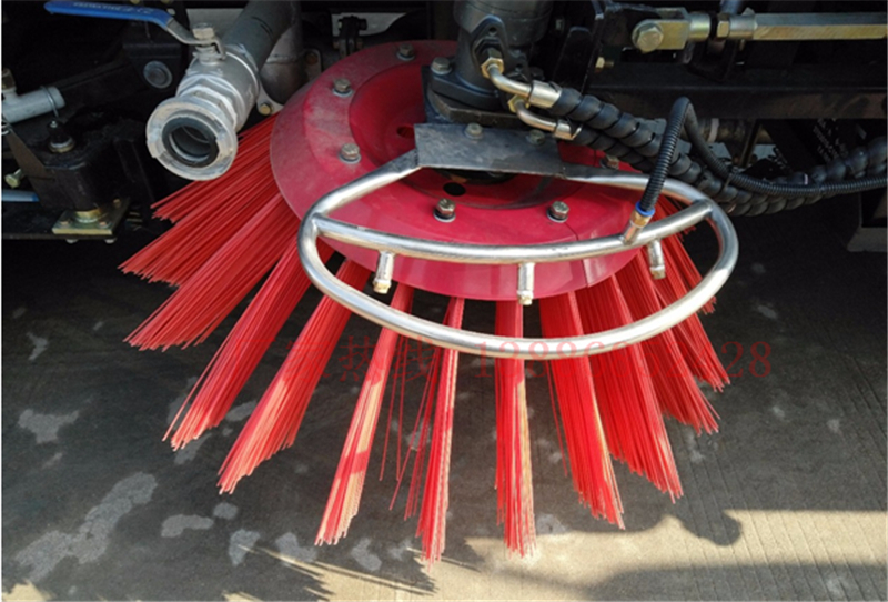16、吸盤(pán)內(nèi)有高壓噴水裝置,噴嘴布置在吸盤(pán)內(nèi)部,能最大限度沖洗路面。左右高壓噴水支架安裝在吸盤(pán)上,隨吸盤(pán)升降,結(jié)構(gòu)簡(jiǎn)單緊湊,保證噴水支架達(dá)到最佳的沖洗效果。