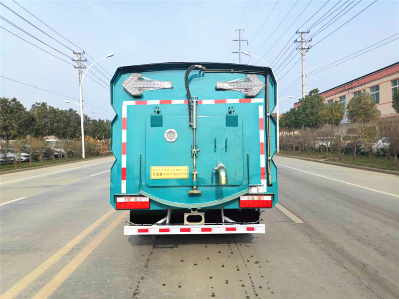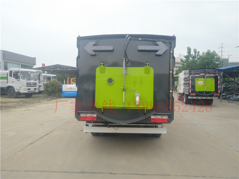 ● 清水箱和垃圾箱分體布置,有效空間利用最大化,一次連續(xù)作業(yè)時(shí)間長(zhǎng)。同時(shí)在作業(yè)過(guò)程中可通過(guò)污水排放裝置對(duì)污水進(jìn)行排放,隨時(shí)加清水繼續(xù)作業(yè);垃圾箱采用雙油缸自卸卸料,箱內(nèi)同時(shí)設(shè)有大流量高壓噴嘴,可快速?zèng)_洗垃圾箱