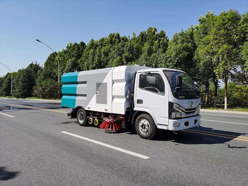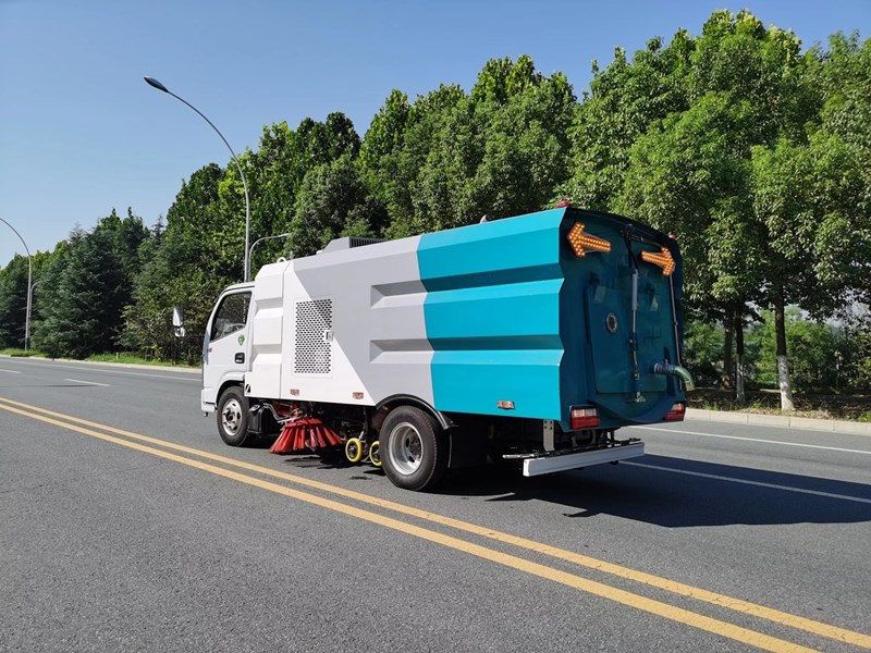 該洗掃車(chē)采用東風(fēng)多利卡國(guó)六二類(lèi)底盤(pán)改裝,加裝副發(fā)動(dòng)機(jī)、風(fēng)機(jī)、清水箱、垃圾箱、左右立掃、掃盤(pán)降塵系統(tǒng)、左右高壓側(cè)噴高、吸盤(pán)內(nèi)置高壓主噴桿、氣動(dòng)系統(tǒng)、液壓系統(tǒng)、專(zhuān)用裝置電控系統(tǒng)和副車(chē)架等改裝而成。