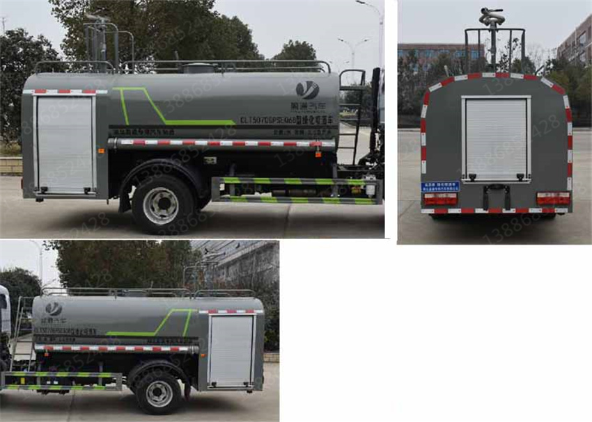 消防灑水車_遠(yuǎn)距離消防噴水車_5方消防水罐車_消防專用水罐車_湖北盈通專用汽車有限公司該車主要用于城鄉(xiāng)園林綠化噴灑,噴藥;主要裝置為罐體及噴霧裝置;罐體有效容積:3.8立方米,罐體外形尺寸(長(zhǎng)×長(zhǎng)軸×短軸)(mm):2860×1760×1100;ABS型號(hào)/廠家:ABS/ASR-12V-4S/4M/襄陽(yáng)東風(fēng)隆誠(chéng)機(jī)械有限責(zé)任公司;側(cè)、后防護(hù)材料均為:Q235碳鋼,連接方式均為:螺栓連接,后部防護(hù)截面尺寸(mm):120×50,后部防護(hù)離地高度(mm):430.隨底盤選裝駕駛室,選裝燃油箱,電瓶,尿素罐,儲(chǔ)氣筒左右安裝位置.選裝噴霧裝置樣式,選裝罐體左右側(cè)及后部樣式時(shí),后防護(hù)為專用裝置代替,離地高度為430mm