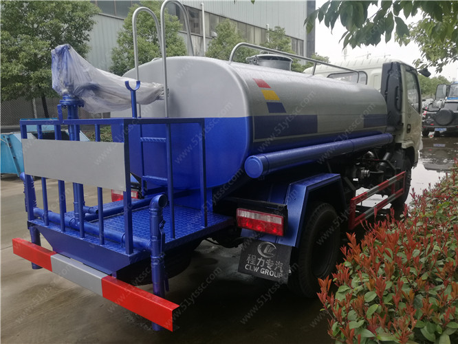 6、灑水車前噴頭位置較低,靠近地面,噴灑壓力較大,可用于沖洗路面;后噴頭位置較高(灑水車后噴頭一般左右各安裝一個),灑水面較寬,可用于公路施工灑水,使用后噴頭時,應將前噴管關閉;使用可調噴頭灑水時,灑水寬度可根據需要調整。灑水寬度越寬,中間重疊量越少,灑水密度越均勻。