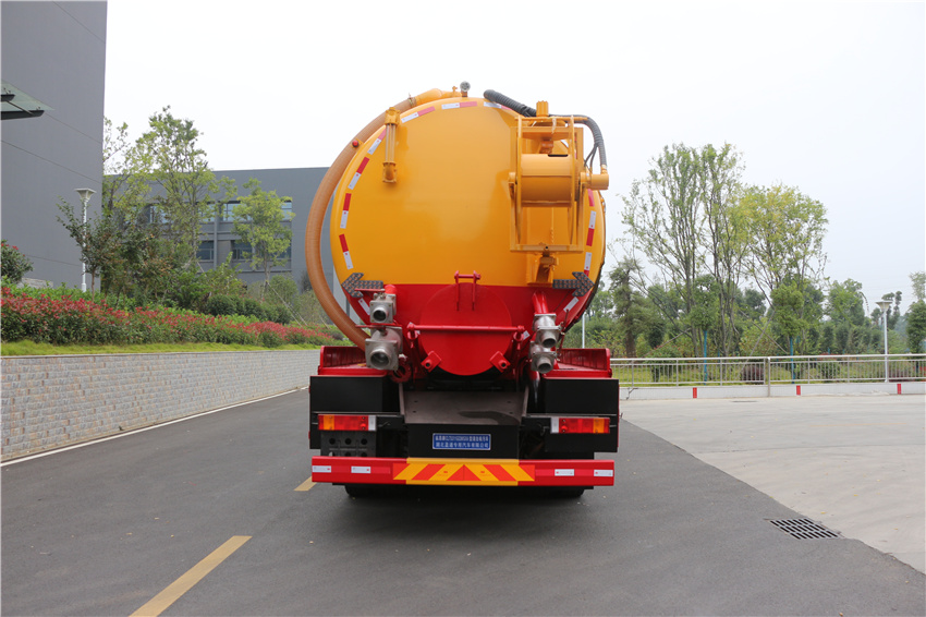 東風35方清洗吸污車,天龍35方疏通吸污車,管道疏通車,市政下水道清理車,高壓清洗吸污車,選裝罐體側面樣式;ABS型號:3631010-C2000;ABS生產企業:東科克諾爾商用車制動系統(十堰)有限公司;選裝描述:隨底盤選裝駕駛室,選裝罐體后部樣式;側后防護情況:側、后防護材料均為Q235碳鋼,連接方式:螺栓連接。后防護截面尺寸(mm)200×60,下邊緣離地高480mm;污水罐總容量14.6立方米,污水罐有效容積13.9立方米,介質:液態污物,密度:800千克/立方米;清水罐總容量11.68立方米,清水罐有效容積11.12立方米,介質:,密度:1000千克/立方米,罐體尺寸為(直段長×直徑)(mm):7100×2350(前部3150mm為清水罐,后部3950mm為污水罐);專用功能及裝置:該車用于清洗吸污,主要專用裝置為罐體及清洗吸污裝置;其他說明:兩罐獨立,且不能同時滿載,清洗功能時用清水罐,吸污功能時用污水罐,卸料方式:舉升后卸;選裝前部不帶卷簾門保護箱。